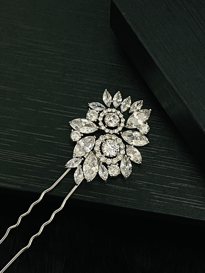 HANNAH - Multi-Shaped Marquise CZ Hair Pin In Silver