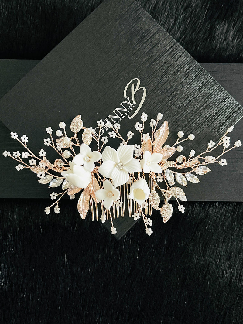 GIOVANNA - Flowers Crystal Leaves And Pearl Sprays Hair Comb