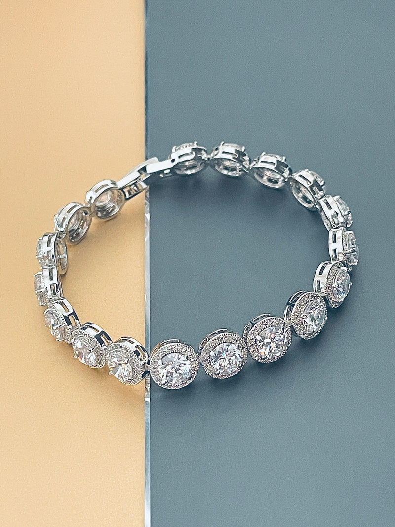 ONEIDA - 7" Larger Round CZ Stones In Small Round CZ Setting Bracelet In Silver